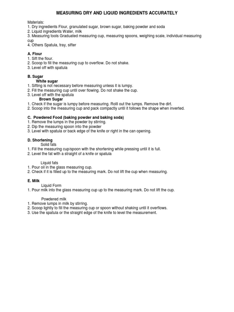Measuring Dry And Liquid Ingredients Accurately A Flour : Normally Used For Liquids Only.